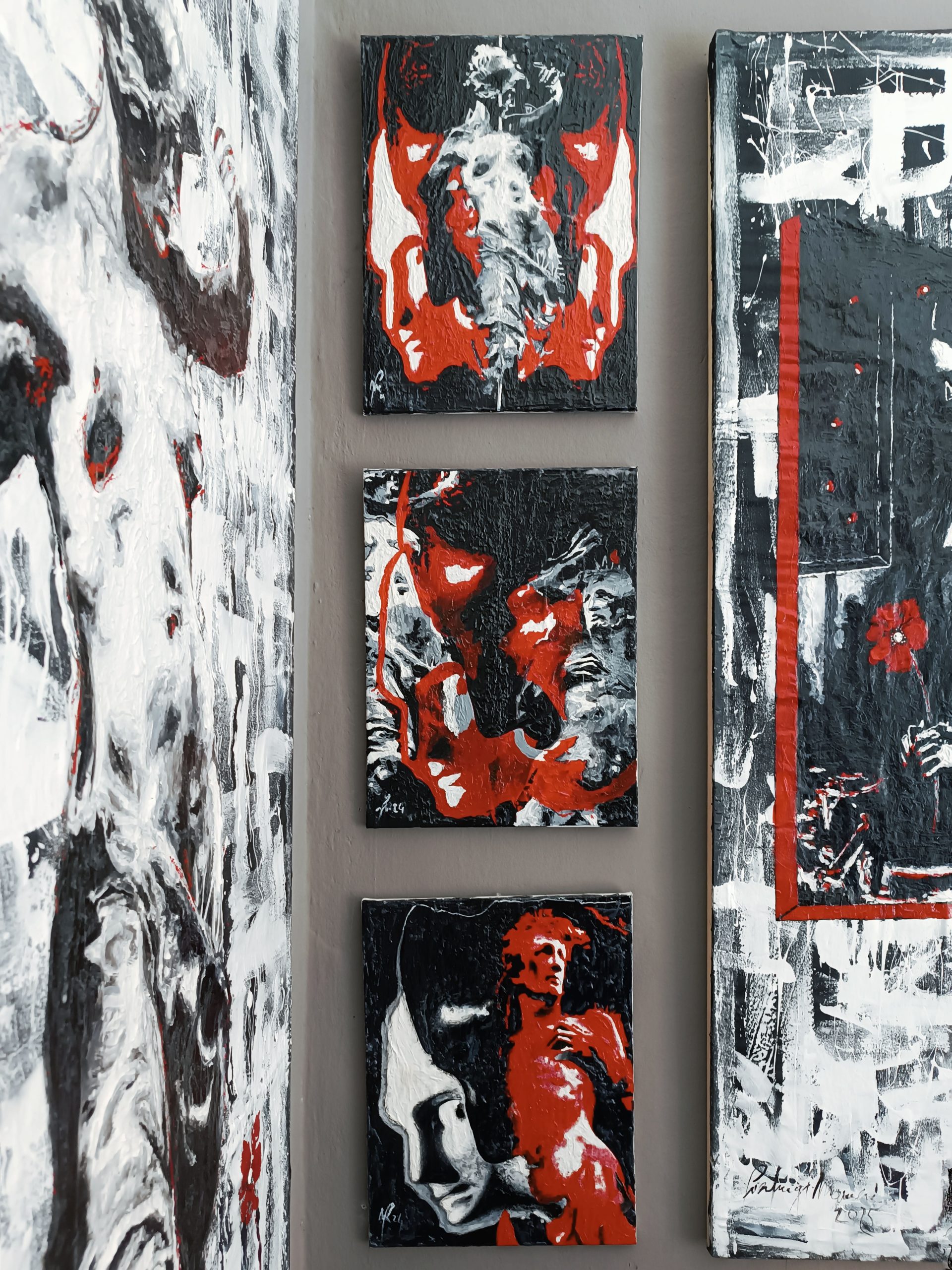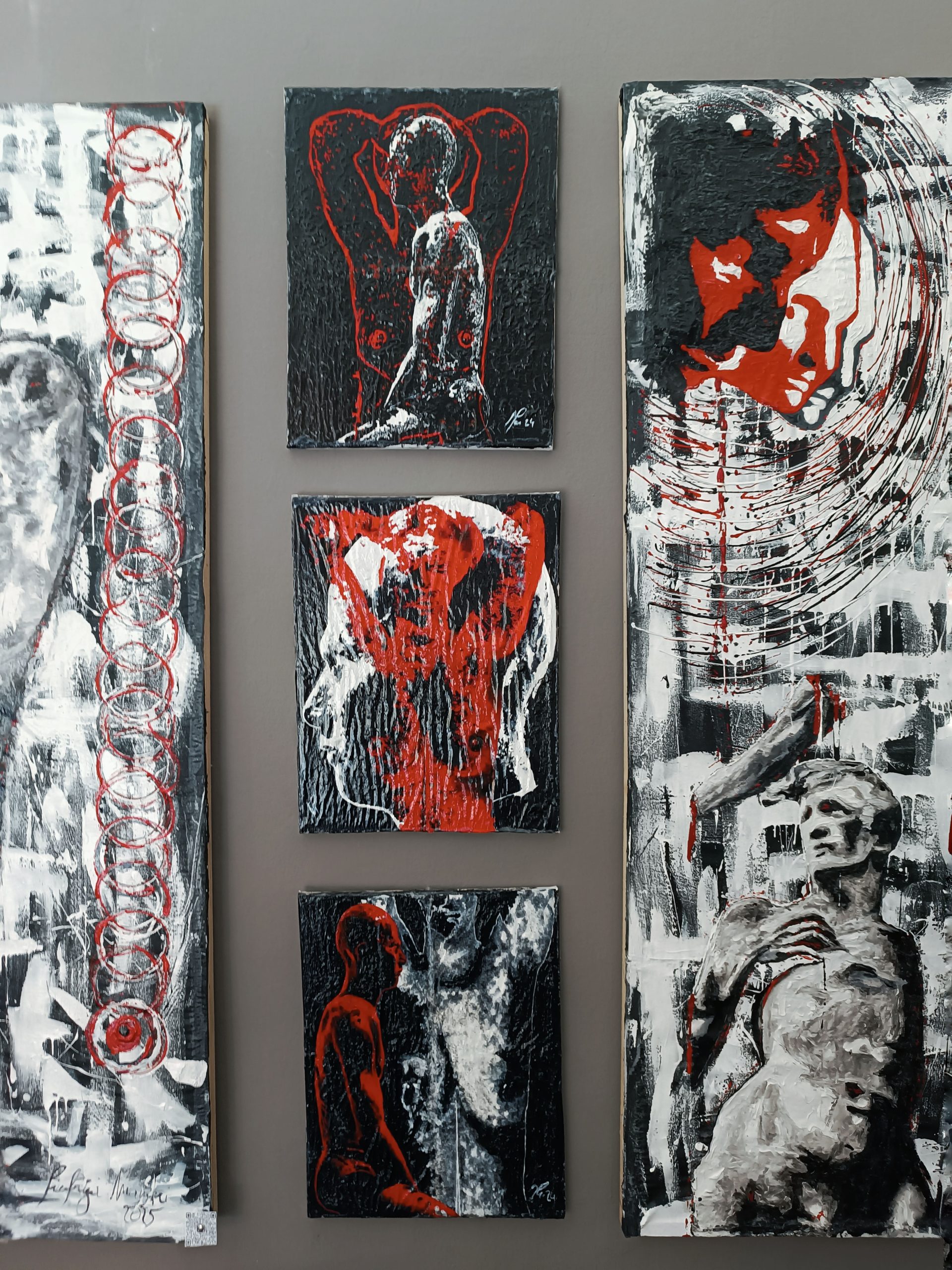 La mostra ha preso vita dal mito di Orfeo ed Euridice, reinterpretato come viaggio interiore. Non più soltanto la discesa di Orfeo negli inferi per ritrovare l’amata, ma l’esperienza universale di chi affronta le proprie ombre per ricongiungersi alla parte più autentica di sé. Le 35 tele esposte, accompagnate da piccoli lavori come appunti narrativi, hanno guidato il pubblico lungo le tappe del mito: dalla perdita al ritorno, fino allo sguardo fatale. L’allestimento è stato pensato come un percorso immersivo, in un “luogo altro” capace di amplificare emozioni e riflessioni. Il dialogo con i visitatori tra curiosità, entusiasmo e domande profonde, ha reso la mostra un momento di condivisione viva. Il messaggio, apparentemente racchiuso in un mito tragico, si è rivelato positivo: ciò che crediamo perduto può sempre essere ritrovato, e l’arte diventa strumento di rinascita e consapevolezza.